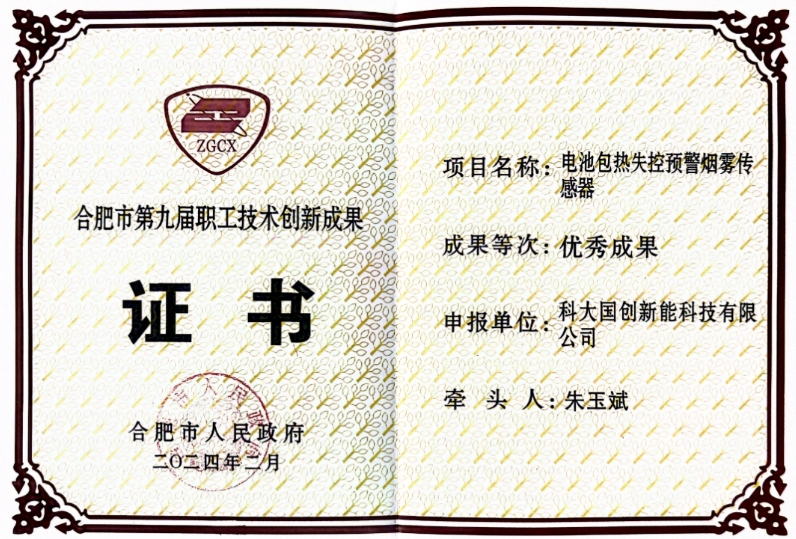 近日,合肥市第九届职工技术创新成果评选结果出炉,国创新能凭借“电池包热失控预警烟雾传感器”和“保护板”两款产品荣获优秀成果表彰。